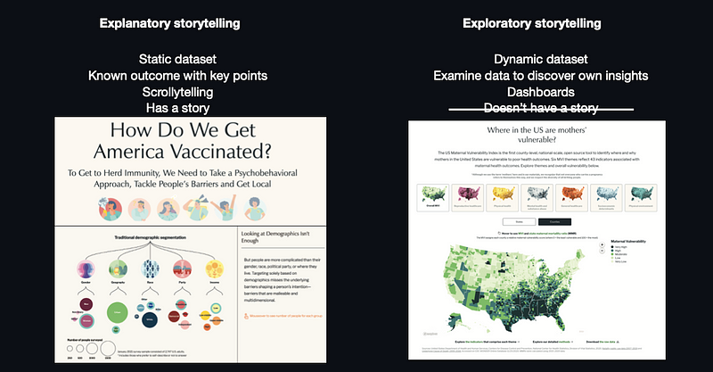 When exploring a data set that is still very fluid, it can be frustrating because there may not be ready insights from the data, and I may not feel confident about telling a story based on that data. But I learnt you can still tell a story. With the maternal vulnerability project which I worked on at Surgo, the dashboard is exploratory, but you still need to provide context and break the issue down, like explain why mothers in the US are more vulnerable, the impact of racism, and then why this issue matters. So you can still have a point to make in exploratory data stories.