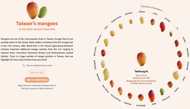 I really appreciate the feedback process, which helps me decide the kind of work that’ll resonate with my audience. It’s not always intuitive in the beginning. Thinking about the audience and being in their shoes is the most important. I would make sure throughout the whole process to proactively seek feedback from the graphics people, but also from those completely outside the graphics sphere, like my mom and my husband, to see if they really resonate with the graphics. That may depend on the subject type. Like with Taiwan Data Stories, I knew that culturally, the audience would resonate more with cute illustration styles. I look at what the audience is engaging with, and that informs the kind of style I would do.