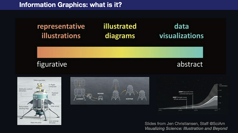 My mentor Jen Christiansen explained that illustration and data viz really exist on a spectrum — there aren’t really clear lines between them. On one end you might have more realistic representative illustrations, then illustrated diagrams which are more abstract, then data viz-like bars and charts. But illustration can also be the output of data. So I’d let the point of the story dictate the format.