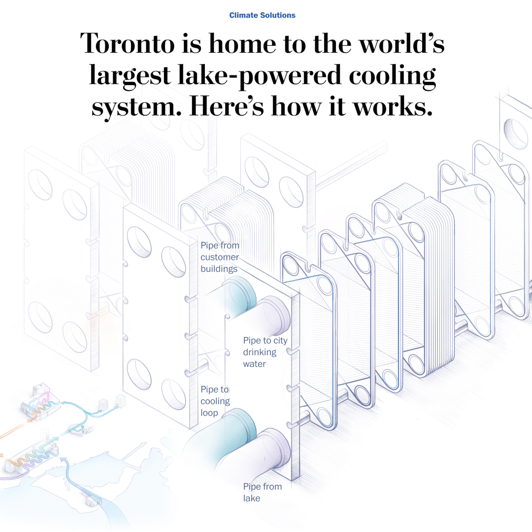 Everyone in a creative role thinks about that. My approach to learning new skills is to try to fold in a new approach/technology/technique for each project, and see each skill as a way to expand my toolbox that I can then fluidly tap on for new projects. For example, in a story about Toronto’s lake-powered cooling system, I learnt to work with 3D models, which I hadn’t used before.