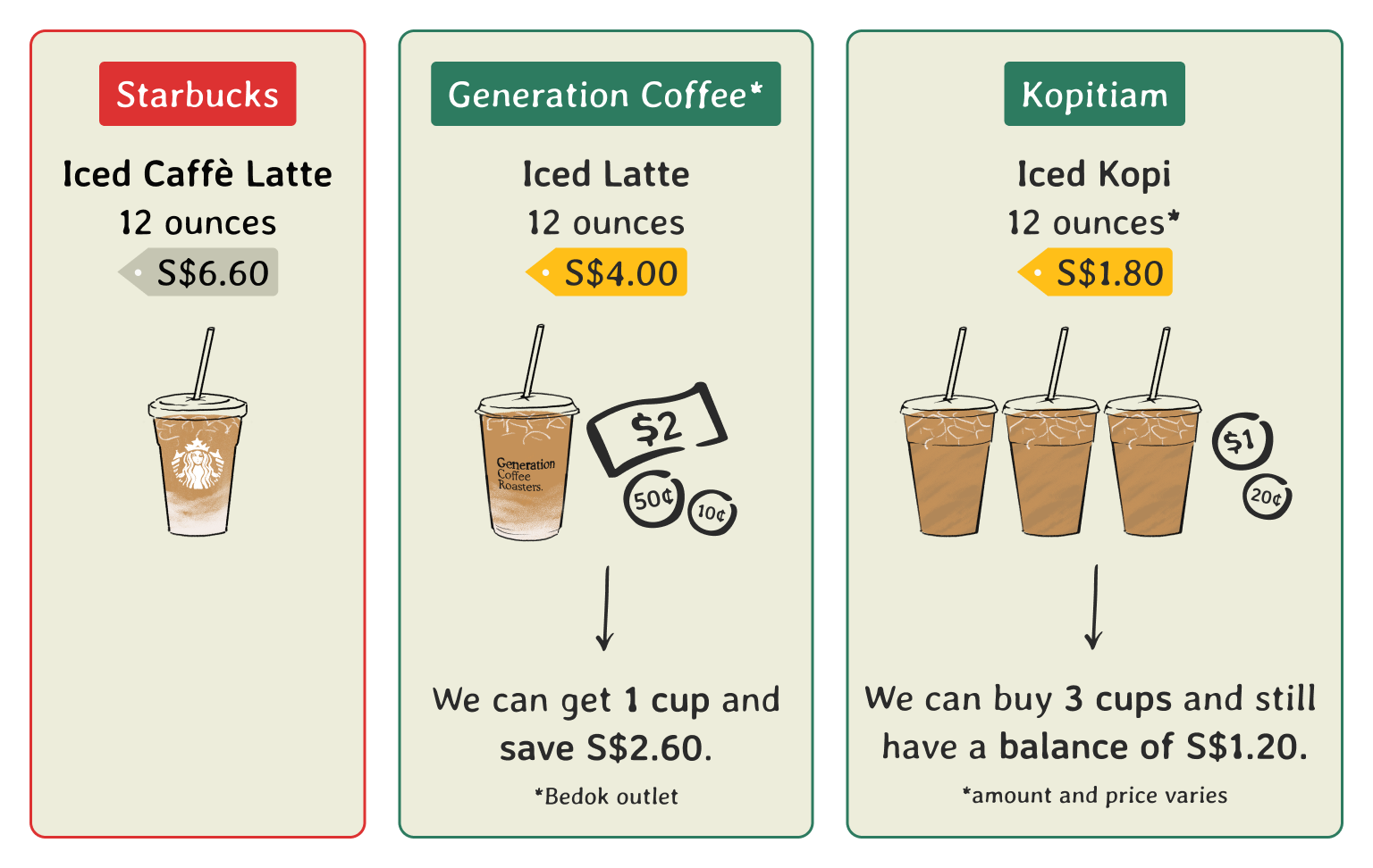 What coffee can we get with the price of 1 regular Starbucks coffee in Singapore?