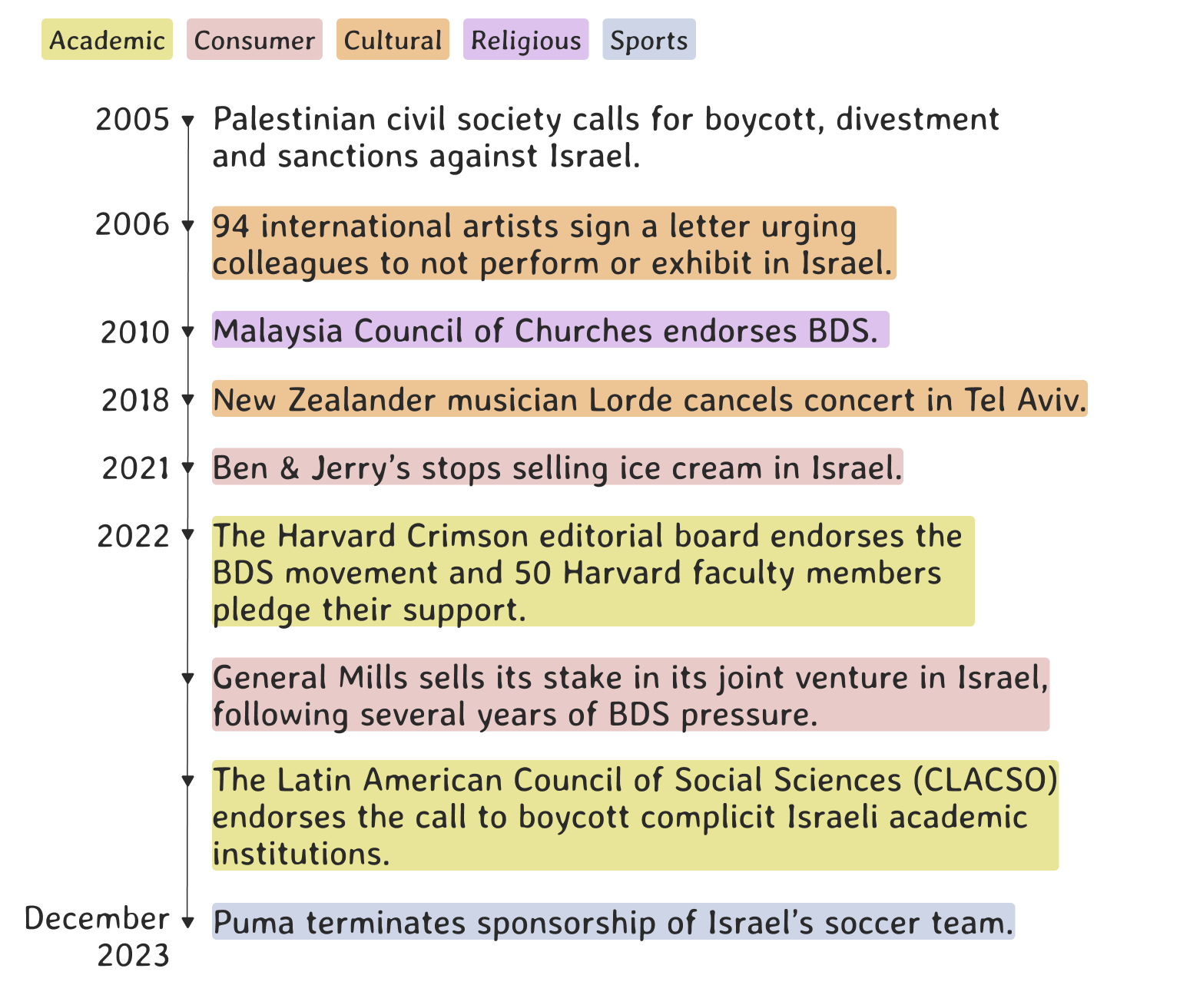🇵🇸 Palestine Boycott, Divestment, Sanctions timeline