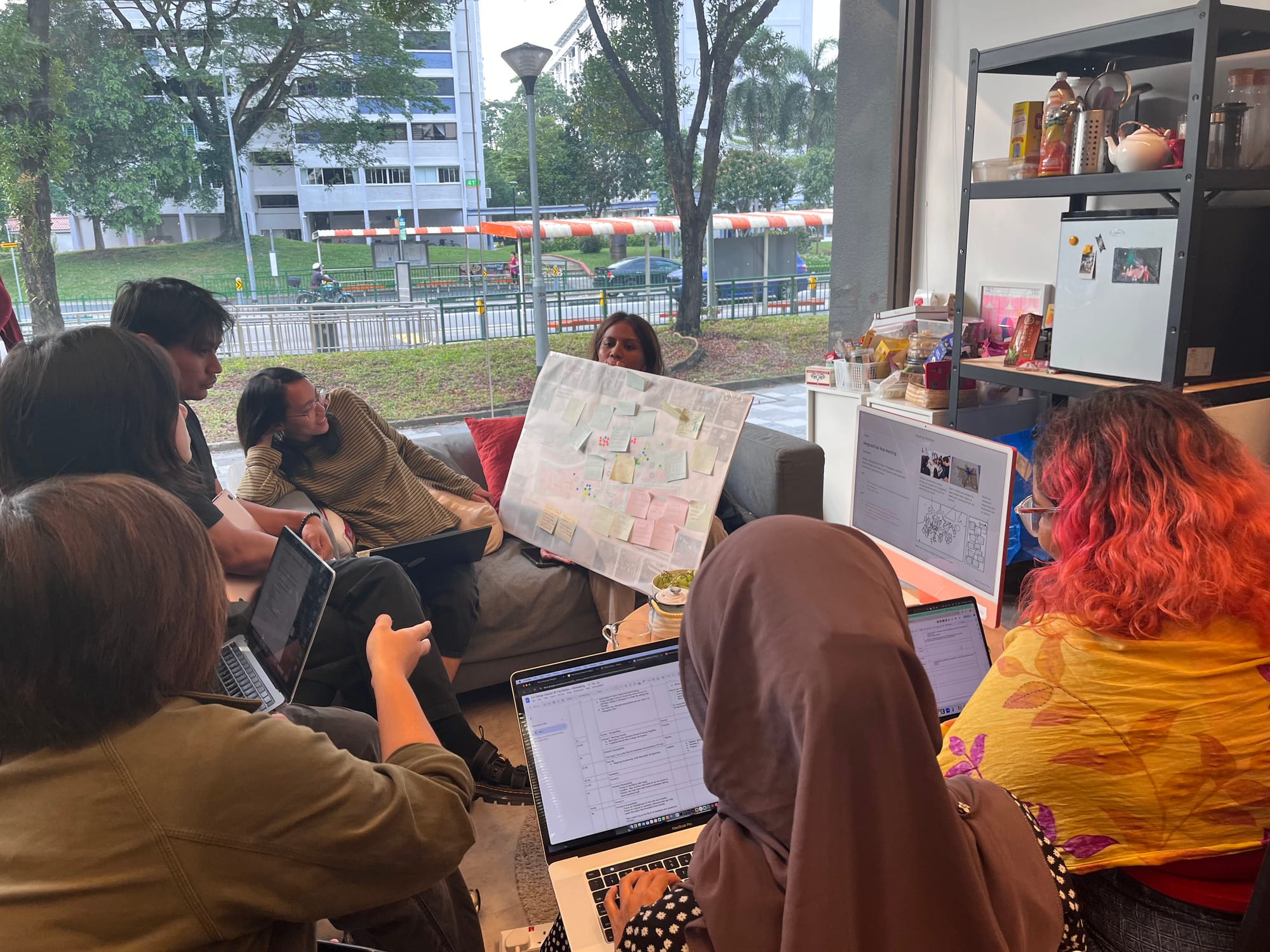 We wanted to ensure our modes of engagement were accessible at different levels of participation. This required us to test out prototypes and make adjustments where necessary. We were provided with a roughly 4m by 4m booth, situated alongside other exhibitors. Due to the nature of the activities, providing ample space for participants to comfortably write and reflect was important. We visualised the exhibit layout to test the orientation flow, then built a prototype in our office space. We invited Orang Laut SG to try the activities and share their feedback.
