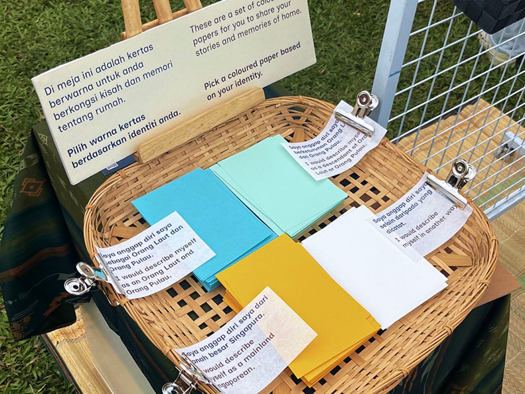 While shaping the methodology for this project, we had to keep in mind that Orang Laut Singapore’s main goal was to unpack and understand the effects of displacement for the Orang Pulau and Orang Laut communities. To avoid casting a heavy mood around this topic, we reframed our inquiry around the movement of homes. Our approach was participatory, where everyone at the event regardless of their identity could reflect upon the idea of home and share personal experiences of relocation.