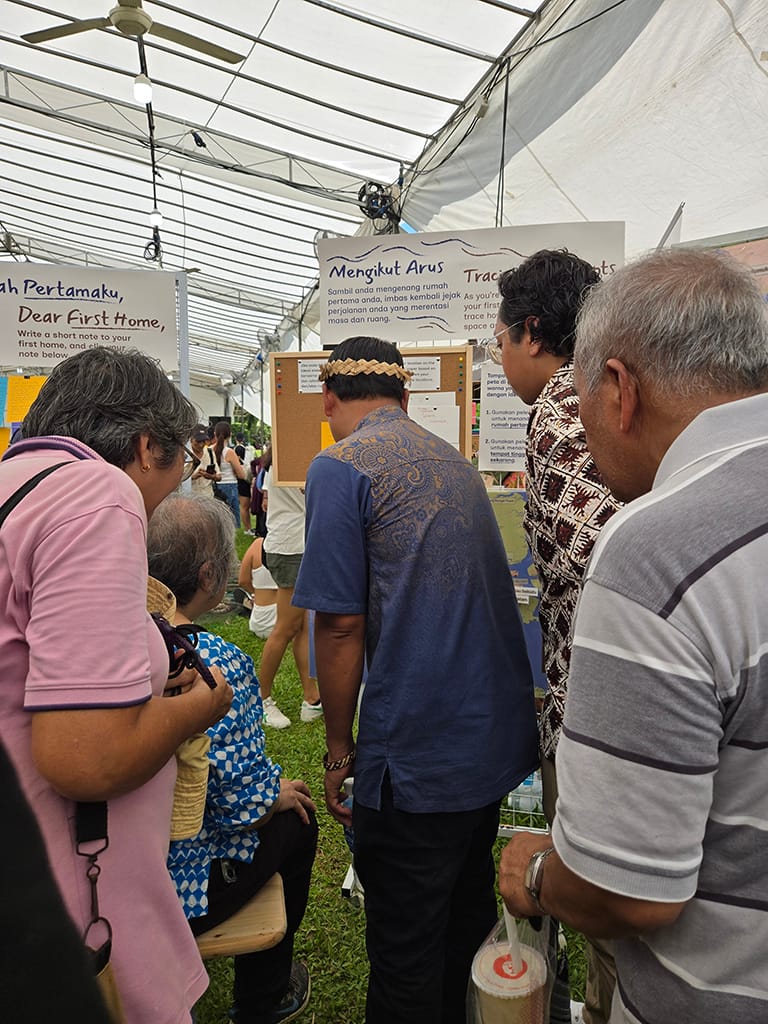 A seemingly small but meaningful act during these sessions was the serving of local delicacies (kuih) and tea, as well as space for flowing conversations, so everyone could feel welcome. For the exhibit itself, we applied similar principles: avoid leading conversations, and focus on organic, genuine engagement with participants.