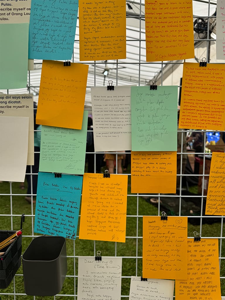 There were many memorable moments where older folks would stop by, and generously share their memories and knowledge. From an event-goer proudly sharing that his wife—an Orang Laut—still practices silat gayong, to a mainlander recalling the names of the vanished kampungs on mainland Singapore, to an elder recalling owning a boat and diving for fish in his youth; these personal stories demonstrate deep-rooted connection to the land and sea, and by extension the loss of homes, traditions, and livelihoods as a result of displacement.