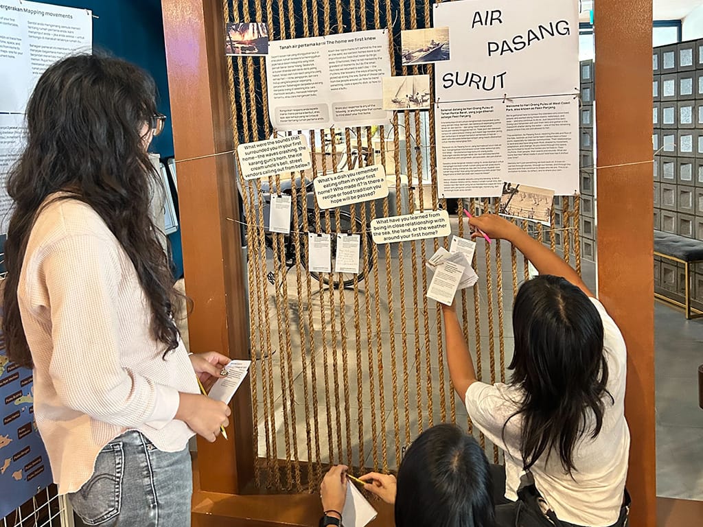 Translations were also carefully considered, since direct conversions often do not capture the intended nuance. For example, our phrase “Tracing Movements”, meant to reflect the shifting of homes, was translated as Mengikut Arus. A direct translation of “tracing” (menggaris) and “movements” (gerakan) would have resulted in “menggaris penggerakan”, which fell flat and is disconnected from context. Instead, Mengikut (“to follow”) Arus (“currents”), accurately conveys the sense of shifting and transformation.