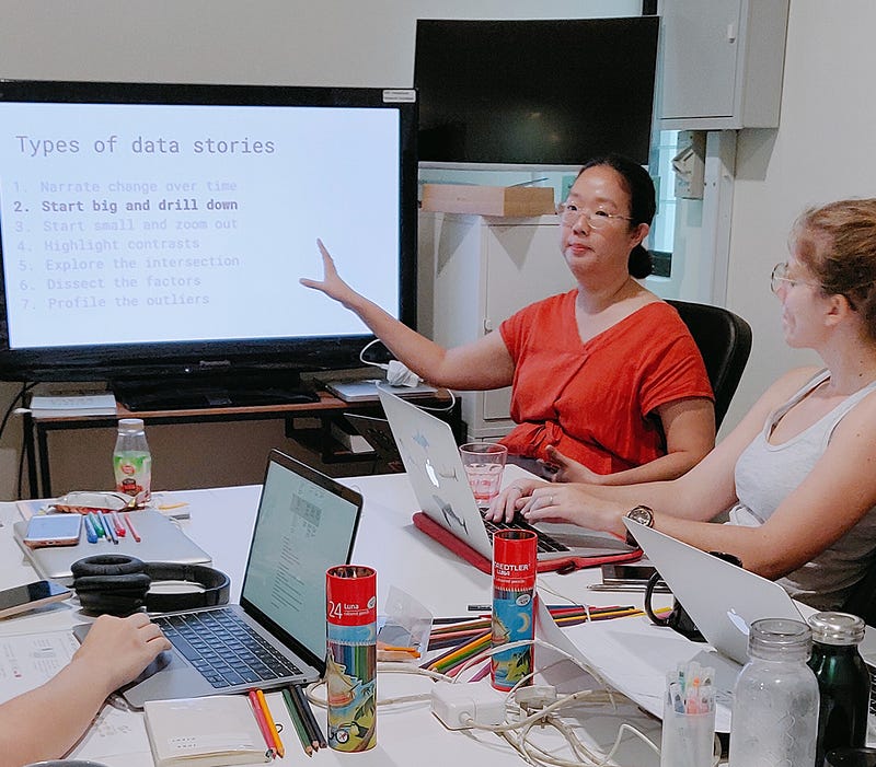 But other than being driven by data, what other storytelling and visualisation considerations are there? To answer these questions, our chief editor Peiying, and design lead Joceline, prepared a workshop for the writers.