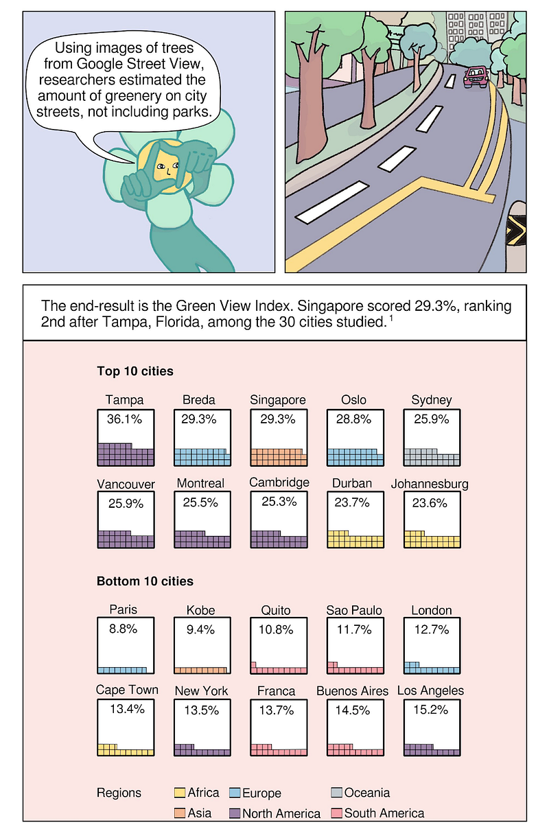 As for style, I think my style is kind of blended. I like to add quirky designs, such as little illustrations and flashes of geometrical styles in my data viz, but I’m still exploring and evolving. I also do data sketches — these are illustrations with data viz incorporated into them, such as data comics. But I don’t have a fixed preference for types of data visualisations, I simply go with what helps to tell the story.