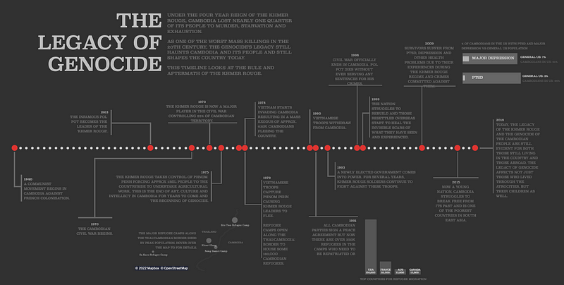 If you’ve seen the timeline about Pol Pot and the Khmer Rouge regime [above] — even though that’s all in the past, there’s still so much trauma that the people who lived through that episode of history still face today. My parents lived through that, and I wanted to bring that to light.