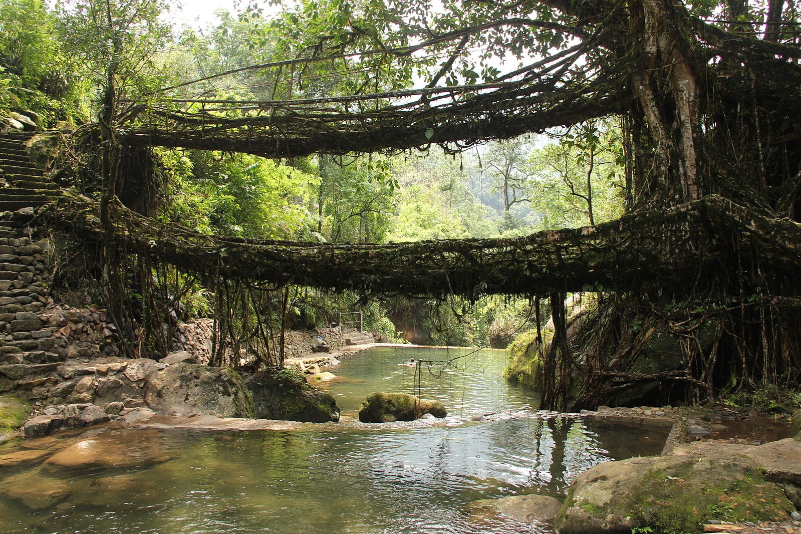 Sprawling ficus trees have become living, breathing bridges known as “jing kieng jri” in villages across the state of Meghalaya, India. Made out of tree roots, the name of the jing kieng jri stems from the local language of the Khasi mountain tribe, meaning “living root bridges”. The Khasi community bioengineered the jing kieng jri over centuries by planting tree saplings and turning it into a communal structure for villagers in the remote forest. After maturing, the roots are then coaxed across the river with the help of bamboo scaffolding, merging over time with trees on the other river bank. These natural bridges are durable enough to support the daily traffic of local pedestrians. Its strength, however, is being threatened by overtourism.