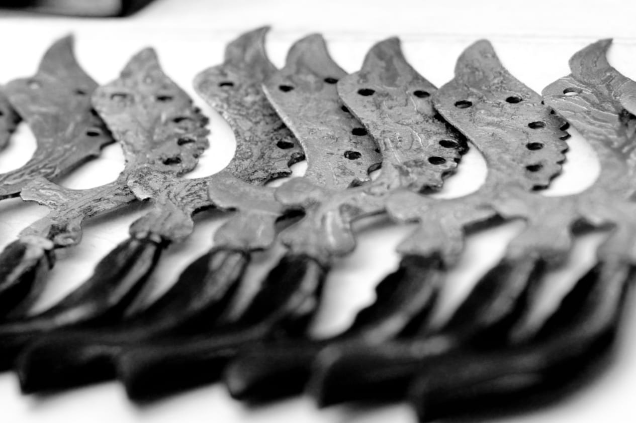 Described as the “weapon of the farmer”, the kujang was created by an ancient Sundanese society from West Java, Indonesia. Its forms are inspired by its natural environment, one of which is believed to be the isle of Java. Forged mainly from iron, the kujang evolved from a practical farming tool to a weapon for self-defence. The wooden handle often features intricate carvings of native animals such as tigers, and is usually crafted from kayu nibung, a type of wood abundant in the coastal areas of Southeast Asia. The kujang was used by farmers, but also carried by royalty, ministers, and fighters. Its multipurpose and ornamental design reflects its varied use and elements of social hierarchy in Sundanese society.