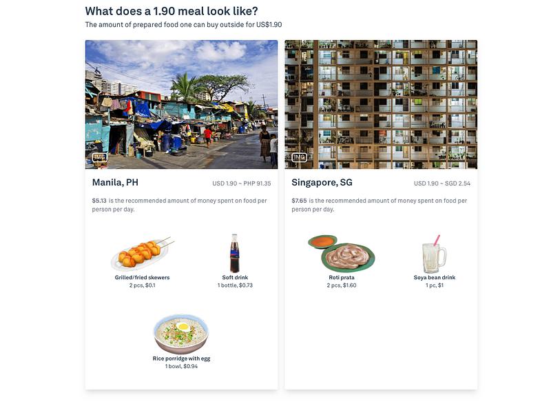 Bianchi and I searched for the prices of basic food items in Manila and Singapore and compared them on the basis of meeting the US$1.90 poverty line.