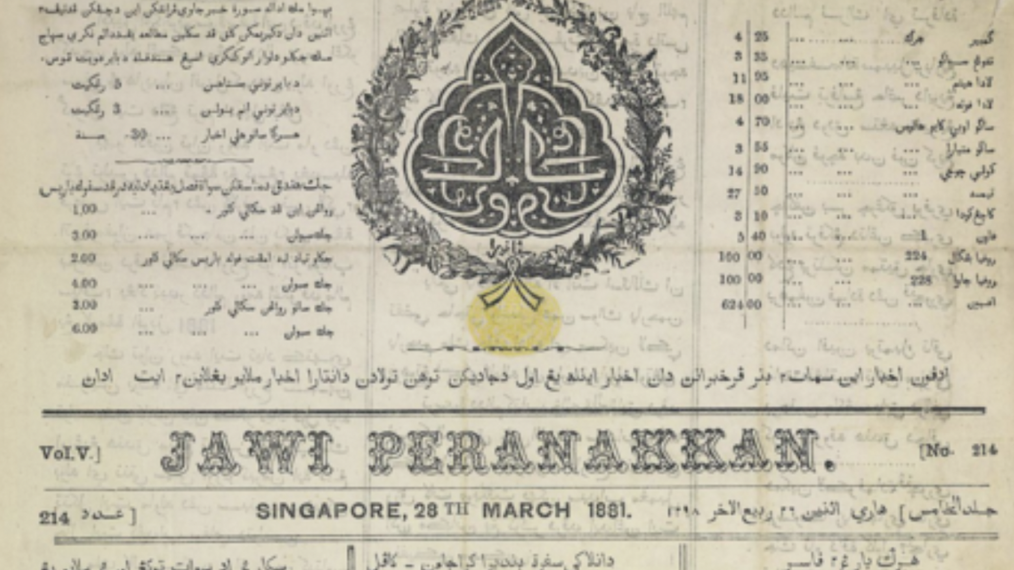 The first Malay-language newspaper published in the Straits Settlements and the Malay Federal States during the colonial era was called the “Jawi Peranakkan”. First published in 1876, it was founded by Munshi Mohd Said. He hailed from Singapore’s Jawi Peranakan community, who had mixed Malay and Indian heritage from marriages between local Malay women and Muslim traders from South India. Written in the Jawi script, a localised Arabic script once commonly used in the Malay Archipelago, the newspaper was published every Monday and covered social events, weather reports, official government notices, and even Malay poetry. The newspaper often discussed issues affecting the Malay community, and was the first Malay newspaper to criticise British colonial policies.